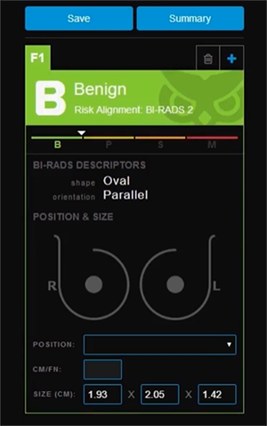 Yazılım, kullanıcının seçilecek ve işlenecek tek bir lezyonu temsil eden en fazla iki ortogonal ultrason görüntüsünden ROI seçilmesini gerektirir. Sonrasında analiz 2 saniyeden az bir zaman diliminde gerçekleşecektir.